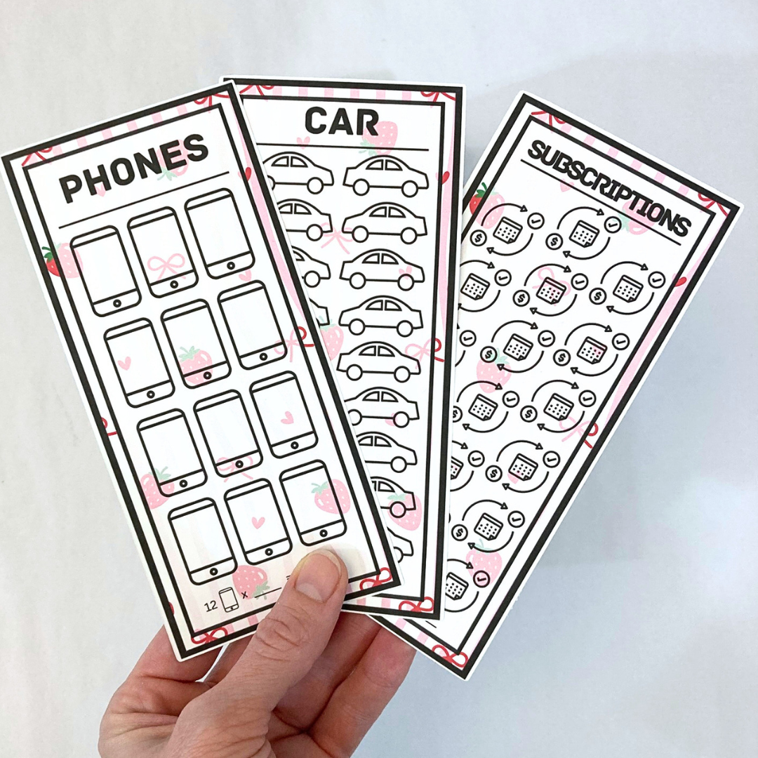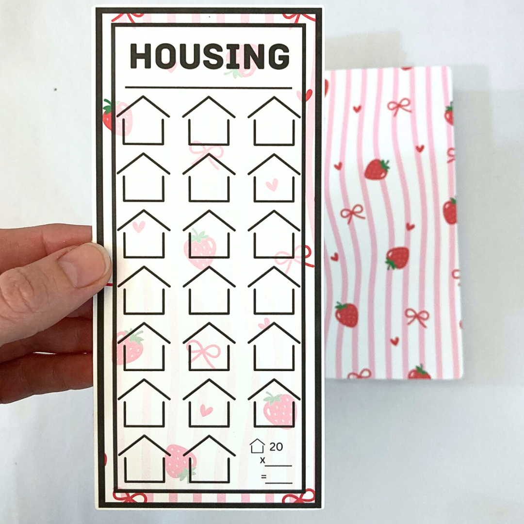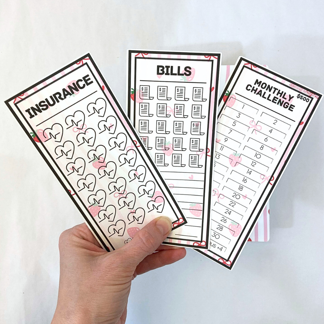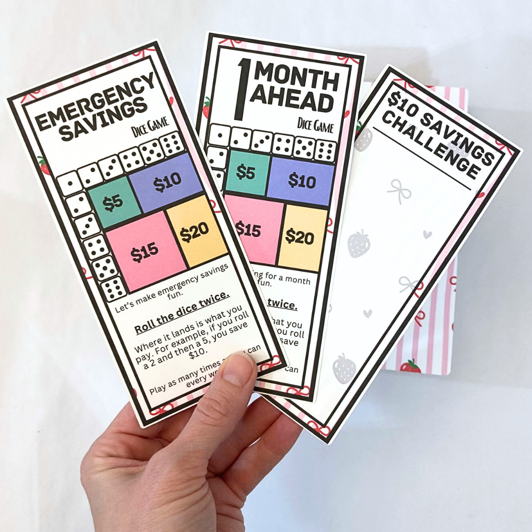 - 32 daily (1/2 size) cards for the monthly savings challenge